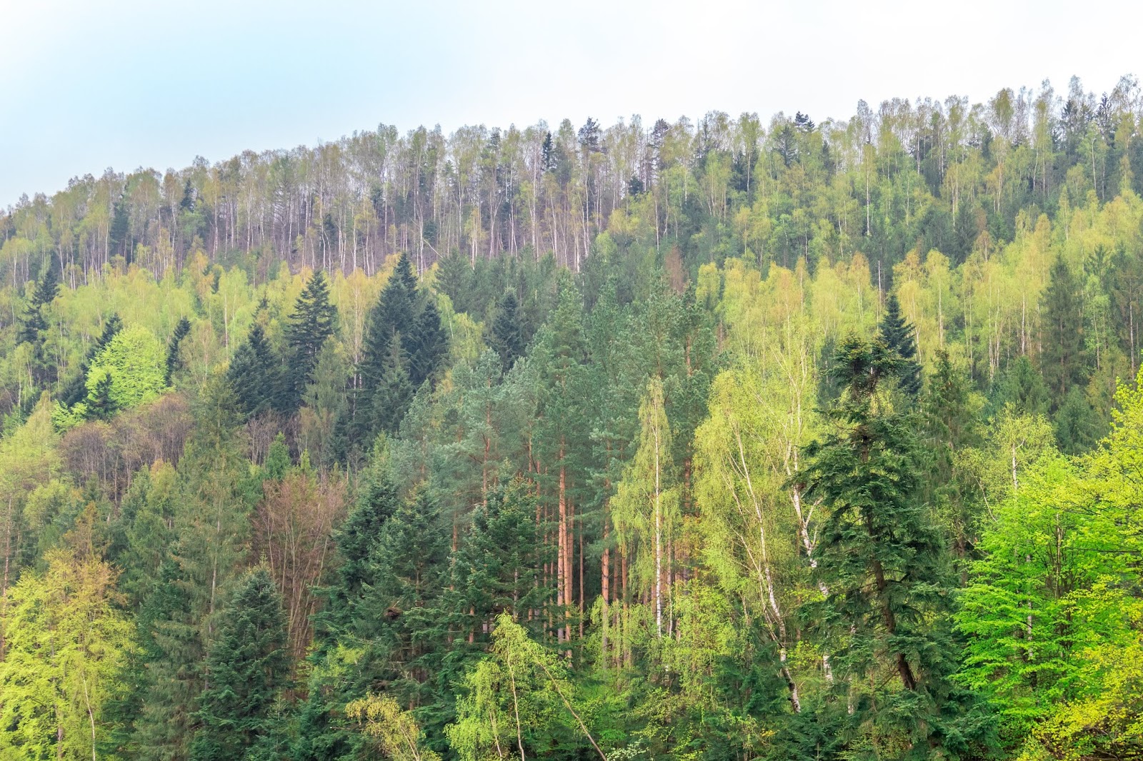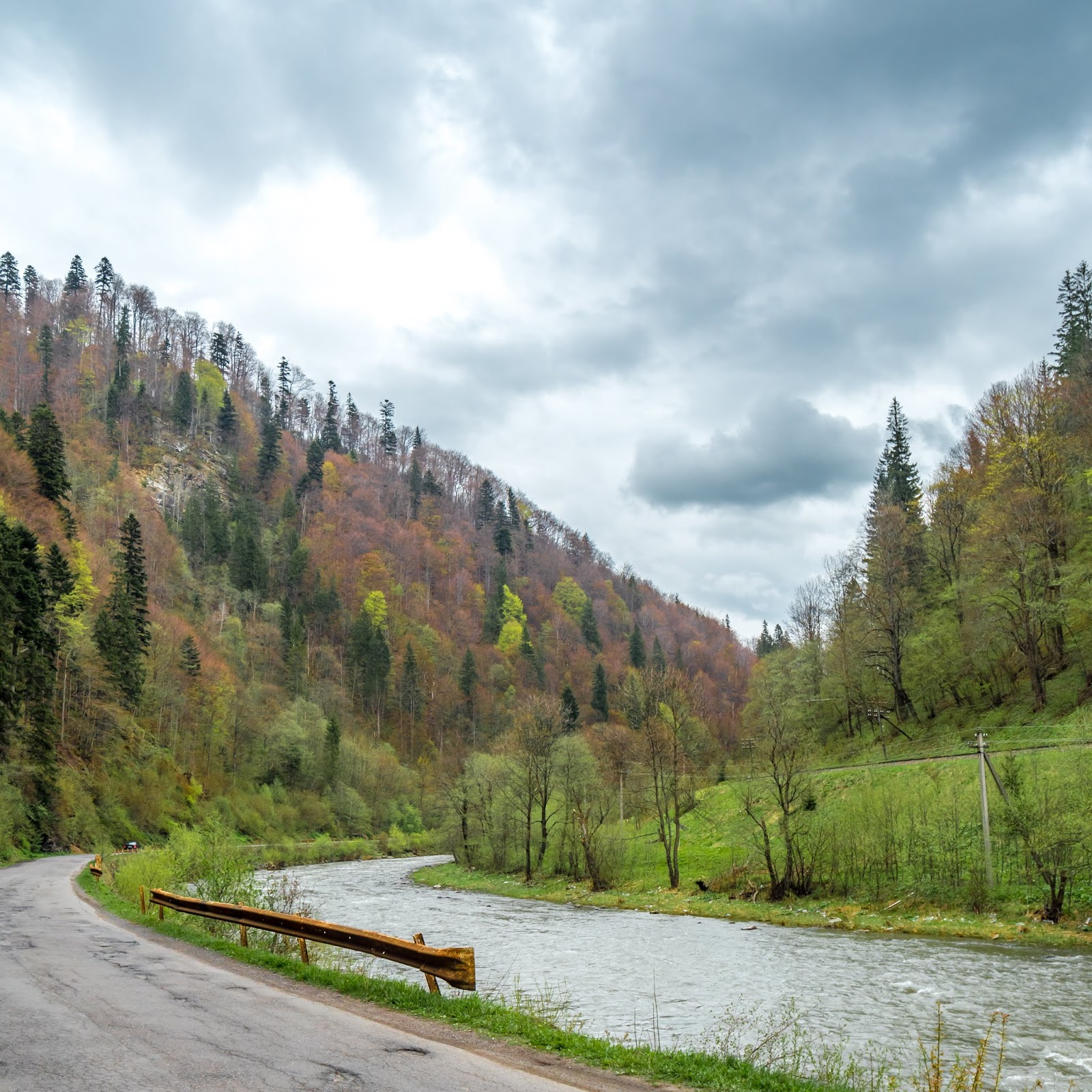 Стена из гор в Яремче почти отвесная, но это не голые камни. Горы покрыты красивейшим смешанным лиственно-хвойным лесом.