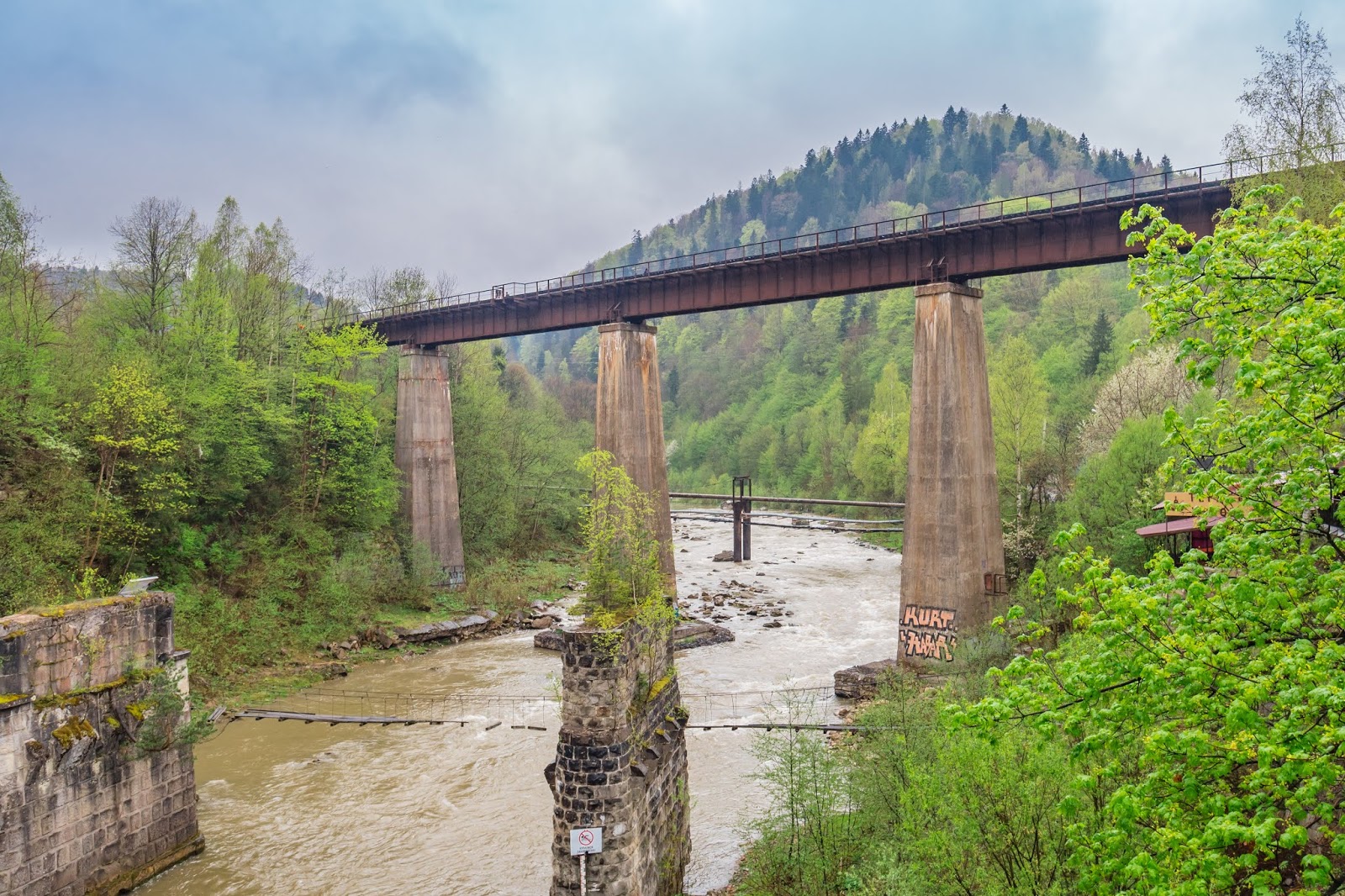 По возвращении в Ворохту решили посмотреть на старый железнодорожный мост, который нам посоветовал дед Василь. Когда-то на этом мосту снимался