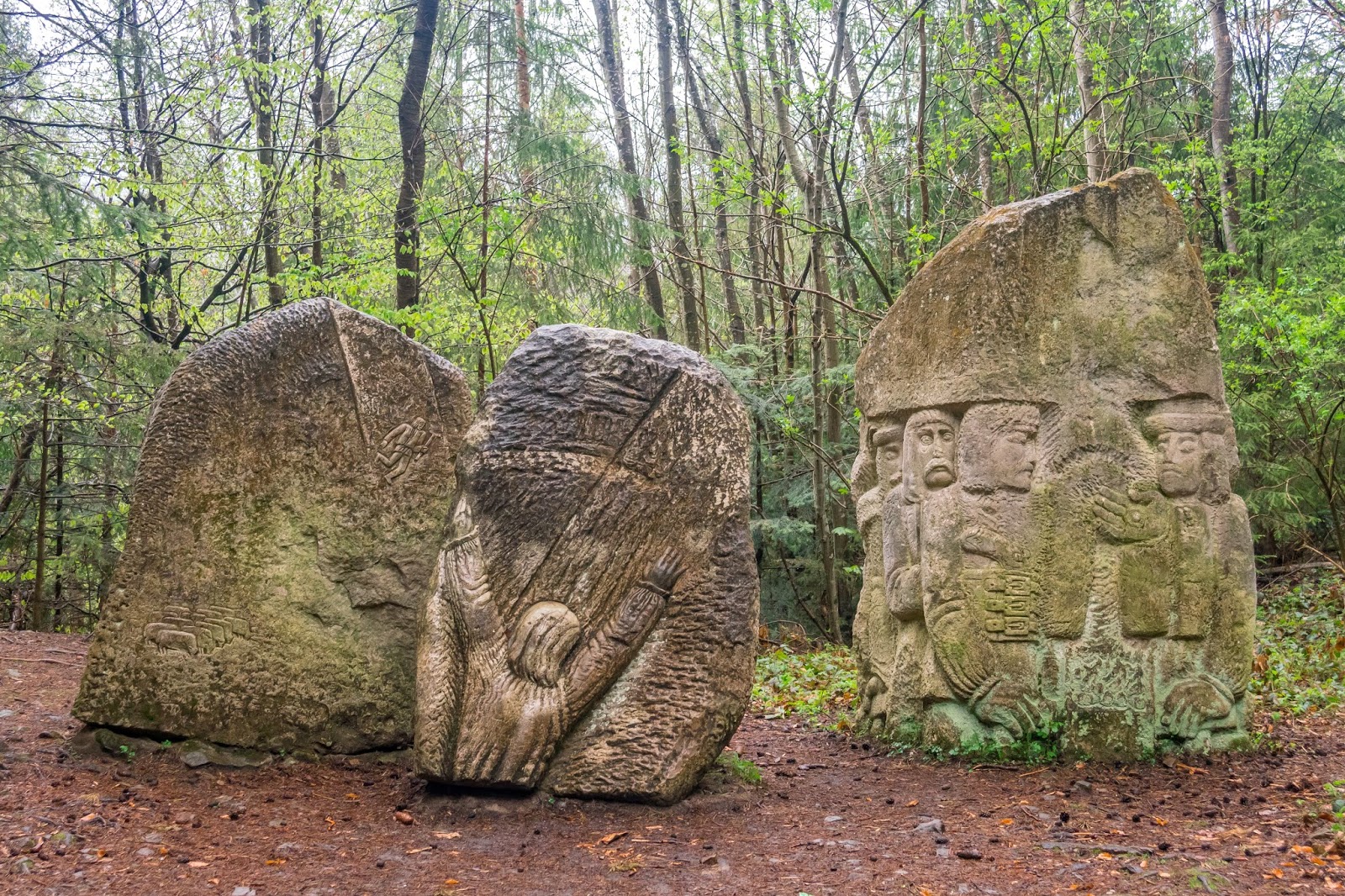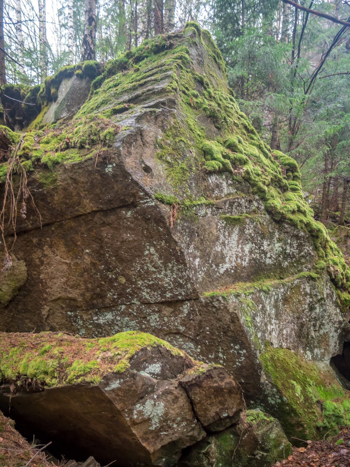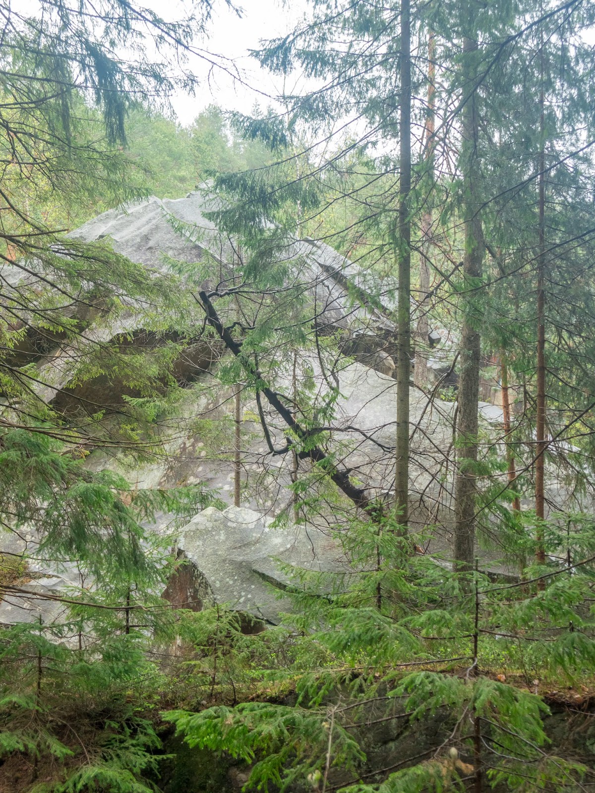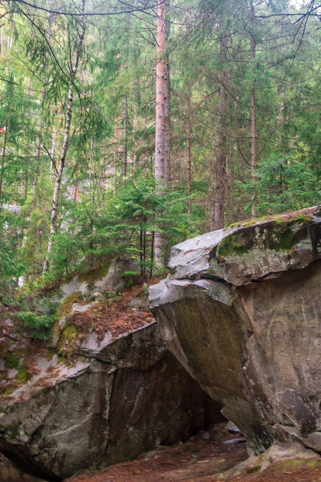 Тропа Довбуша проходит среди огромных обломков горной породы. Окружающий пейзаж напоминает какой-то фантастический фильм: