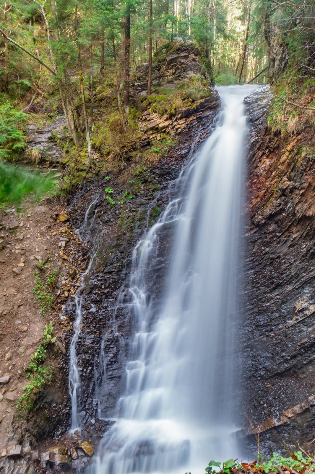 Наконец-то представился случай поснимать со штатива на длинной выдержке. Жалко, что с собой не было ND-фильтра, потому что при его наличие выдержку можно было бы сделать длиннее. И минимальное ISO у моего фотоаппарата для путешествий 200, а не 100 или 50. Около водопада есть две смотровых площадки — верхняя и нижняя.