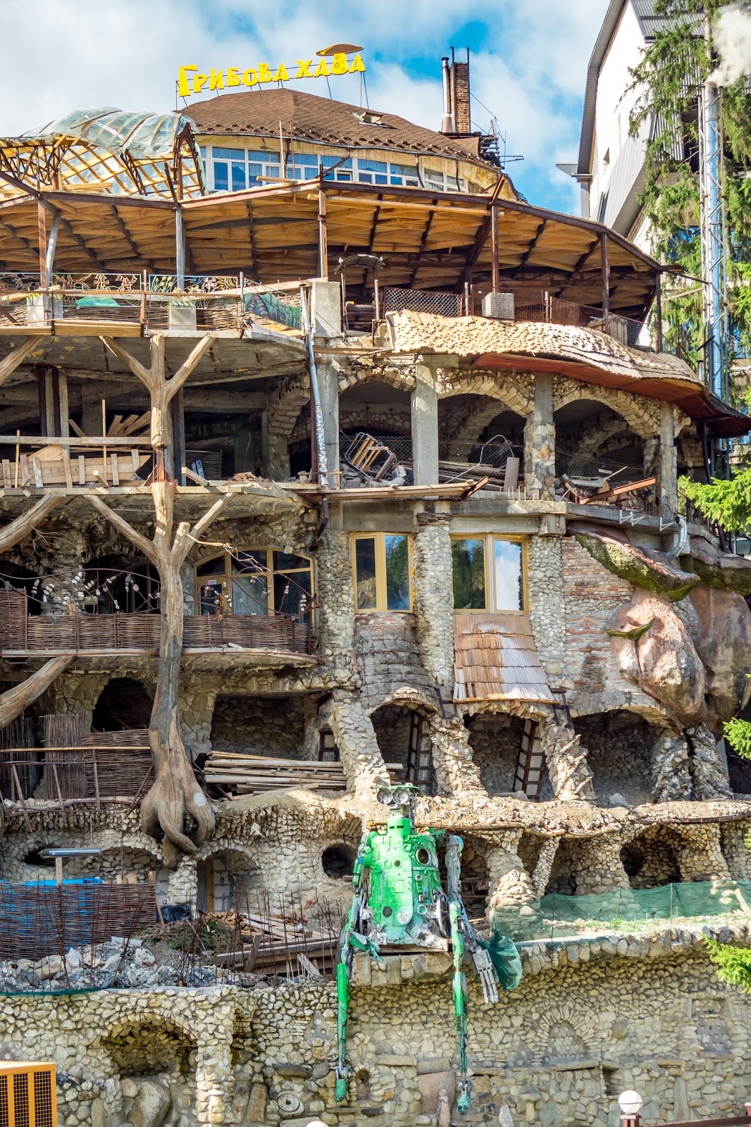 Такие красивые гостиницы мы увидели в процессе поиска автобусной станции. Но автостанцию мы так и не нашли и вернулись в Ворохту на такси за 9 USD.