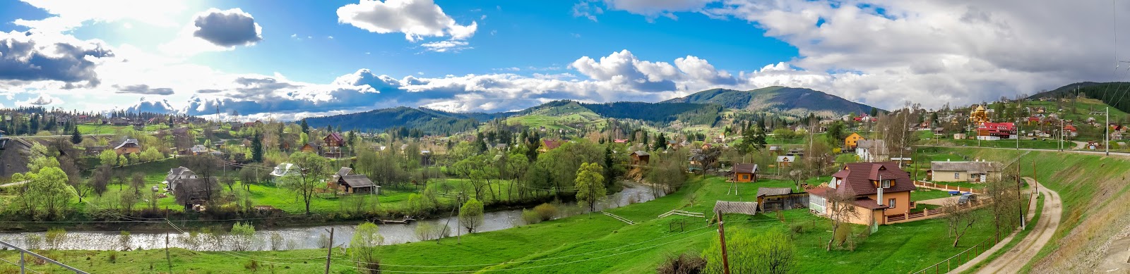 Выше на гору не пошли, так как побоялись заблудиться. Вернулись в гостиницу, перекусили, вызвали такси и на такси поехали в Ворохту покататься на зип-лайне. С зип-лайна пошли в центр, чтобы купить воды и продуктов. Ворохта — очень живописное село, в нём много красивых домов и при этом мало заборов. Дома в селе яркие, красивые, не барачного типа, как у нас в Харьковской области. По селу протекает всё та же река Прут и много более мелких речушек.